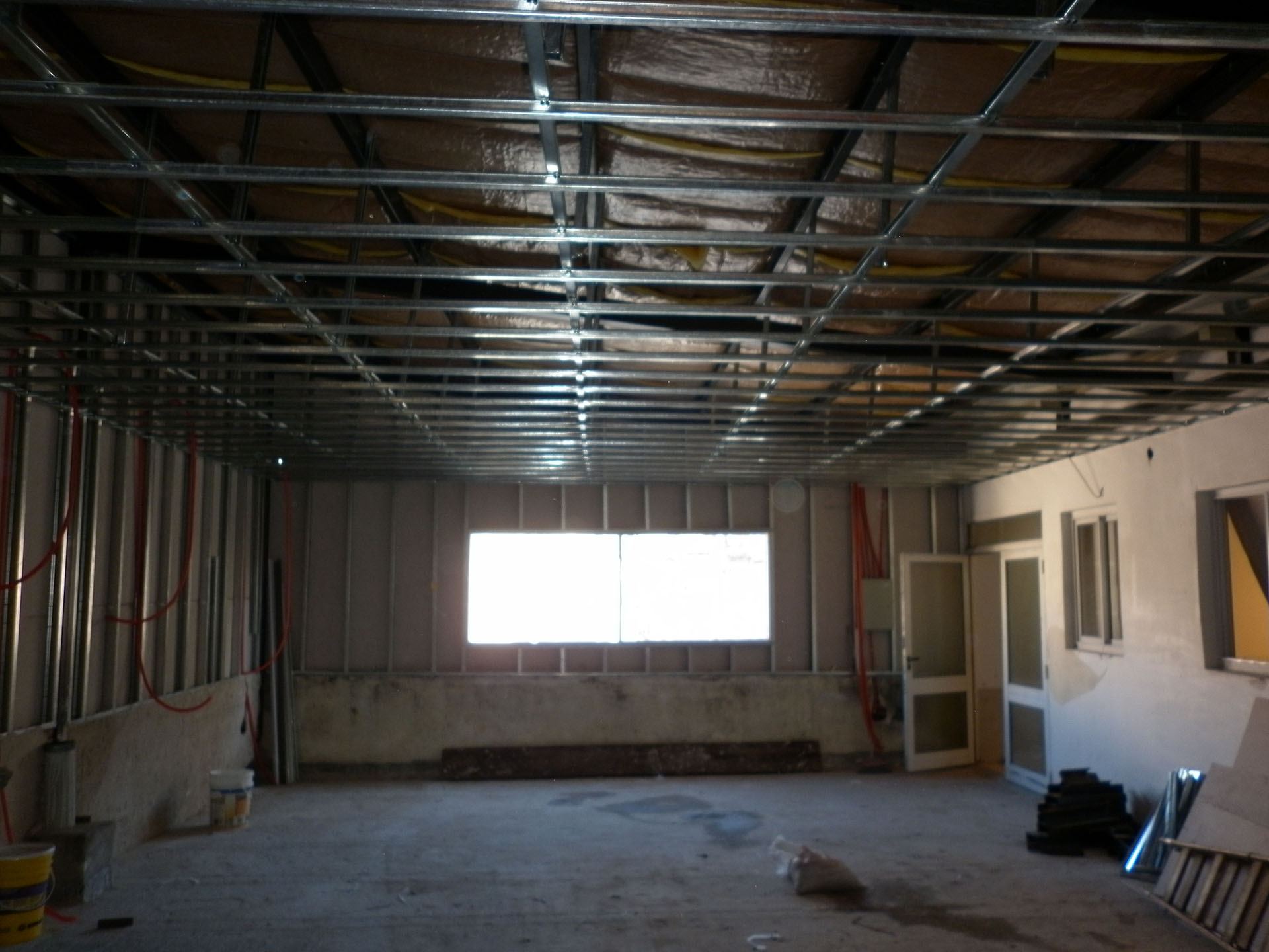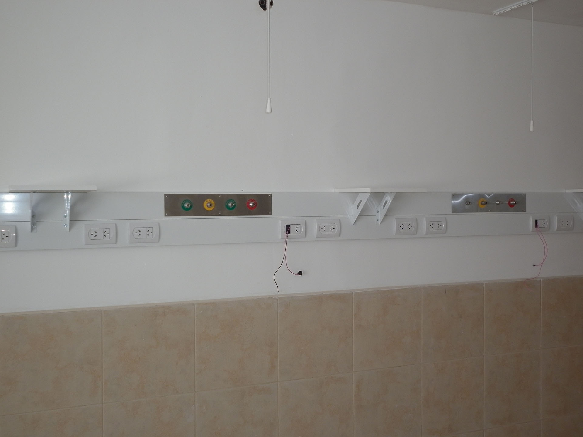 En sector terraza se realizo Estructura metálica para cubierta liviana, Paredes en construcción en seco instalaciones Nuevas de gases medicinales / electricidad / plomería / aire acondicionado / etc. Complementadas las tareas con obra civil de albañilería / colocación de piso / pintura.